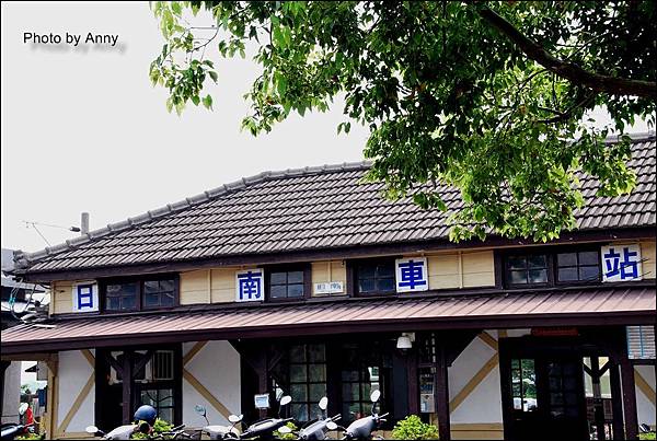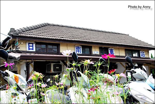 <日南火車站>為日式建築,大致是英國及德國的混合建築樣式。日南車站的站房於民國11年(西元1922年)興建,至今仍保存得相當完整,為海線標準形的木造站房。由月臺側看,可見醒目的牛眼窗就鑲在高處。