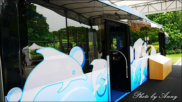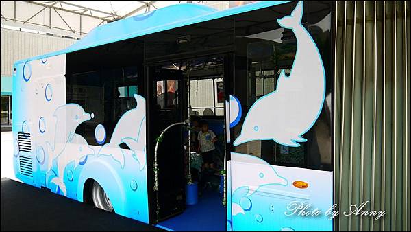 因為要跟海豚設計有整體性,所以車內布置得跟海洋世界一樣,活潑有趣~