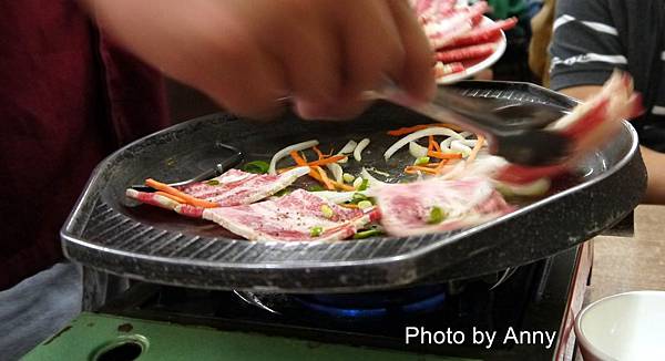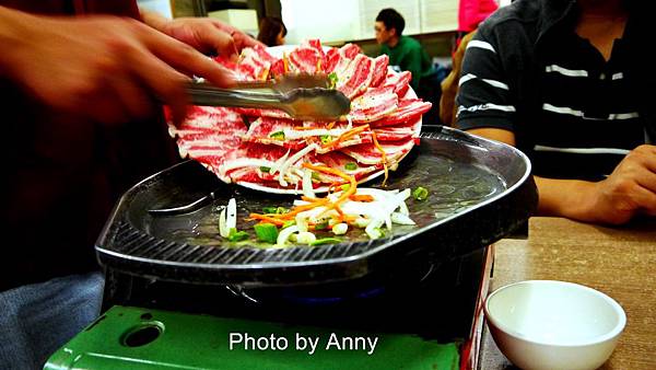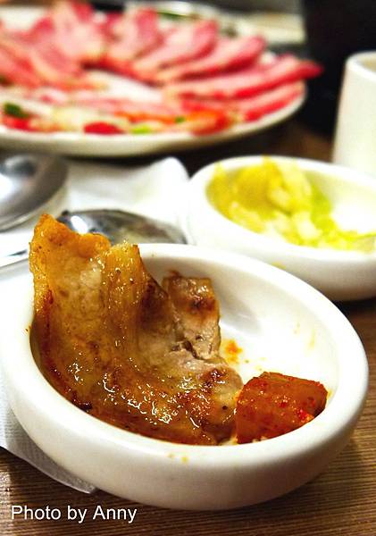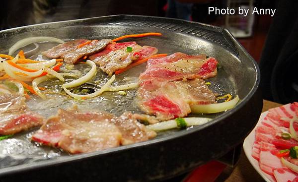 鐵盤的溫度已把這肉的肥油逼出來,所以肉片頓時就縮水許多~還是少吃油比較好~