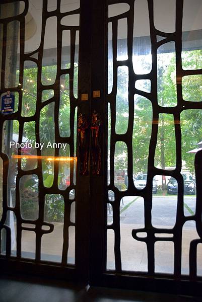 大門是由許多木條組成的,摟空的設計,可以把戶外的景致看得清楚~