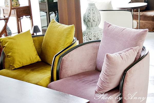 芋頭色和芥末綠的單椅,看起來也好舒適~