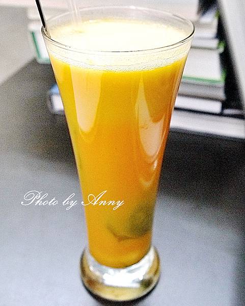因為這杯綠湯含有豐富的葉黃素可以保健眼睛,所以常用電腦的人可以常喝這種飲品~