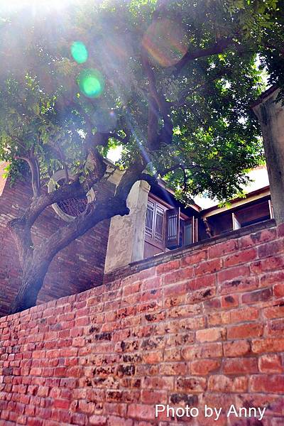 枝枒曼妙,掩映著大宅院裡的閨樓花窗,楊桃樹後方,意樓的花窗用瓦片堆砌出精緻的葫蘆、古錢圖案,圓窗代表圓滿、葫蘆意指福、古錢則象徵財富,小小的圓窗,隱含了主人的祈求。